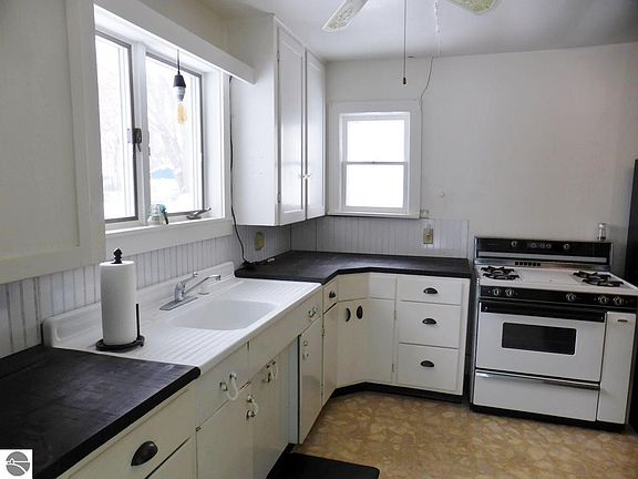 Turn of the century farm home in the Village of Copemish on three peaceful village lots. Home has four spacious bedrooms, formal dining area with historic, beautiful hardwood trim, built in window shelving and high ceilings. There are two main floor bedrooms with a main floor laundry space which makes everything very accessible and provides easy living. The upper level features two bedrooms with a large common area that could be an office space or small den. Relax on your patio or in your sun-room while enjoying the many perennial flowers and huge maple trees that surround the property. There is even a super tasty Red Delicious apple tree. The property also features a heated 26'x 48' pole building with two 8' doors, high ceilings and a half bath. The one car detached garage located closer to the home makes parking a breeze. Land contract options are not available.