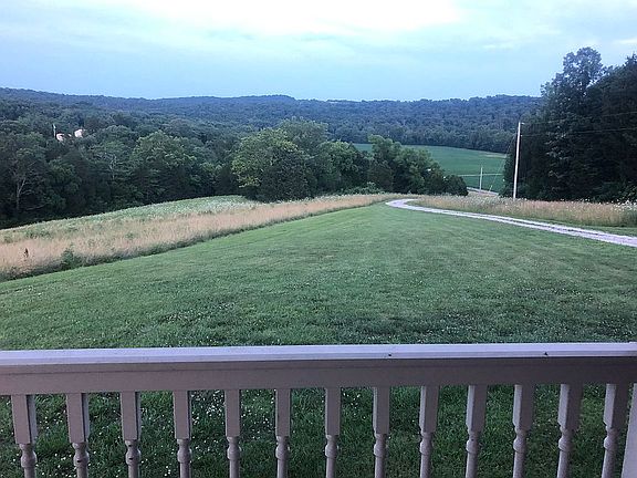 For sales by broker/owner. Beautiful all brick ranch home located on 9.63 acres, secluded with a great valley view. Built in 2004 with 3 bedrooms and 2 baths, open floor plan, main floor laundry, hardwood floors in main living area, vaulted ceilings in great room, custom hickory cabinets in large kitchen with sink in the island, master suite has jacuzzi tub, double sink vanity, shower and walk in closet, 2 car attached garage, full unfinished walk out basement with bonus fireproof room and a roughed in bathroom, wrap around front porch and concrete back patio. Property also has a large barn and several out buildings.