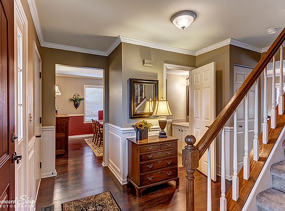 Absolutely stunning Eastwood model in the highly sought-after Hampton Hills! Fabulous updates throughout! Bright & cheery Kitchen features granite countertops, stainless steel appliances, beautiful custom tilework & spacious eating area opening up to the Family Room highlighted by a stately woodburning fireplace. The formal Living Room & Dining Rooms flow easily from the Family Room & Kitchen making entertaining a breeze! 4 Bedrooms upstairs including the Master Bedroom with beautiful upgraded Master Bath. The recently remodeled finished basement boasts finished rec room space, custom bar area & gas log fireplace. Outside, enjoy the warmer months on the deck in your professionally maintained backyard! Many updates including: roof, siding, front door, furnace, A/C, hot water heater, garage door & opener, woodwork including crown molding, updated bathrooms, fresh paint, rich main level flooring & more! So much to be desired here! Do not miss it!