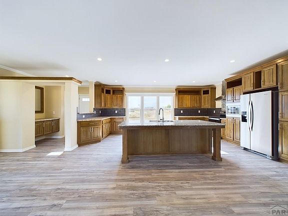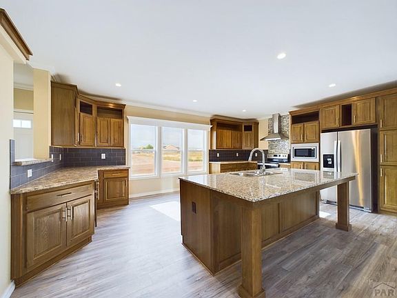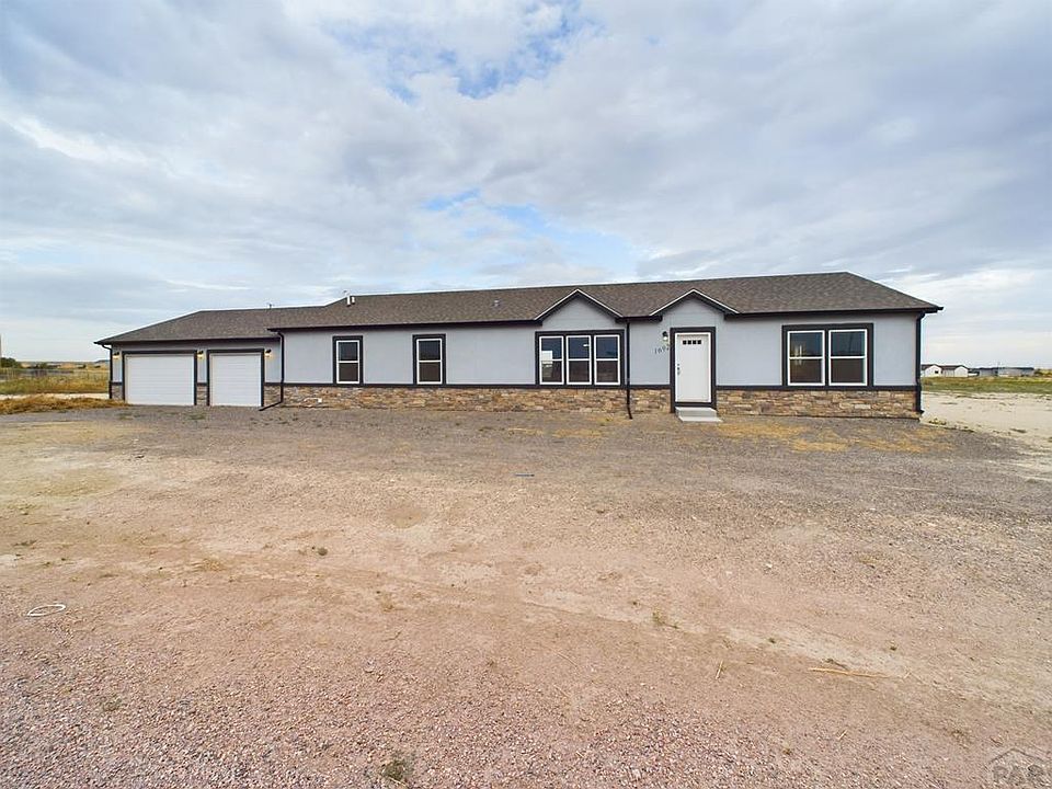 Discover this one-of-a-kind property offering Spectacular Views of Pikes Peak and the Sangre de Cristo Mountains Built on 1.13 acres zoned for horses, this 3-bedroom, 2-bathroom residence boasts an expansive 2062 sqft. of living space with high-end finishes throughout. Exterior Features: Stone and Stucco Facade: Exudes timeless elegance and durability. Oversized 3-Car Garage: Ample space for your vehicles and outdoor gear, complete with two installed garage door openers. Back Patio: Accessed by 2 walk-out slider & rear access from garage, perfect for BBQs and enjoying the mountain views. Interior Highlights: Grand Entry: Features built-in cabinetry and a designer mirror, setting the tone for this luxurious home. Open-Concept Layout: An entertainer's dream, complete with a built-in entertainment center and a gas fireplace framed by stone. Ideal for mounting your flat-screen TV above the mantel. Chef's Kitchen: Furnished with gourmet Whirlpool stainless steel appliances, a granite island that can comfortably seat 4, and custom soft-close cabinets. Master Suite: A true sanctuary featuring a 5-piece master bath with double sink vanity, walk-in shower, and deep soaking tub that offers mountain views. Smart Home Features: Equipped with a Honeywell smart home wifi thermostat and central AC, offering comfort and convenience at your fingertips. Amenities and Location: High-Speed Internet: Highline lightning-fast Gigabit fiber Internet service for all your connectivity needs. Convenien