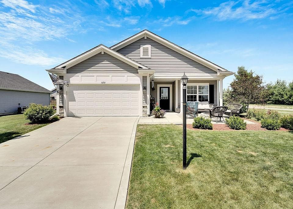 Welcome home to this move-in ready, well maintained 2 bedroom 2 bath ranch home located in desirable Morgan's Corner of Coffee Creek. This spacious open concept design features 9' ceilings, a multipurpose flex room, sunroom and front and back patios. Kitchen features a large custom island, white painted maple cabinets, granite countertops, new lighting, and all appliances stay! Kitchen also has a breakfast nook that leads to sunroom and back patio. The primary bedroom suite has a double bowl vanity and generous walk in closet. There's anadditional good-sized bedroom and a flex room that could be used as a den/office or another bedroom. Large corner lot with 2 car garage and custom paver patio with fire pit. Conveniently located close to highways, shopping, restaurants and the Indiana Dunes. Schedule your showing today, this one won't last long!