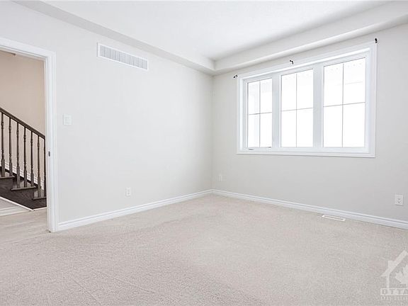 Recently built 4 bed + 4 bath end unit townhome with basement. This is a rare find! The main ground floor features a bright bedroom + ensuite bathroom (this room could be used as a home-based business, teenagers room, AirBnB as additional income). The 2nd floor features an open concept layout with a family room, eating area, and bright kitchen. Neutral colour palette throughout. Patio doors to an oversized outdoor terrace. Spacious dining room with large, bright windows. Upstairs leads you to the primary bedroom with walk-in closet & 3 piece en-suite bathroom. The additional two bedrooms & main bathroom complete this floor. Additional features include a full-sized basement with rough in, double-car garage, large laundry and mud room, central AC, and eavestrough installed. Located in a family-friendly neighborhood, close to schools, recreation, shopping, Tanger Outlets, Canadian Tire Center & close to the 417. No conveyance of any written offers prior to 12 pm Weds Feb 16, 2022.