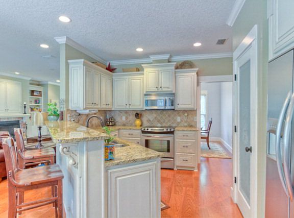 Immaculate and Sturdy 3 bedroom 2 bath in Tolomato Island. Enter your front door to discover an open and inviting split floor plan. Living room boasts wood flooring, brick and tabby fp, and built-ins. Eat-in Kitchen features wood flooring, granite counters, tumbled marble back splash, custom Antique White cabinetry, stainless appliances, bkfst bar, walk-in pantry, & utility closet. Master Suite equipped with his/her closets, double vanity of granite, chiseled travertine, jetted tub, & shower with rain/body spray. Additional features include formal dining, laundry room with sink/built-ins/closet, marvin windows, spray foam insulation, landscape irrigation, front & rear porches, & hardy board exterior with brick & tabby accents.