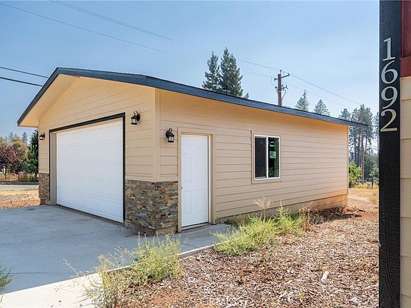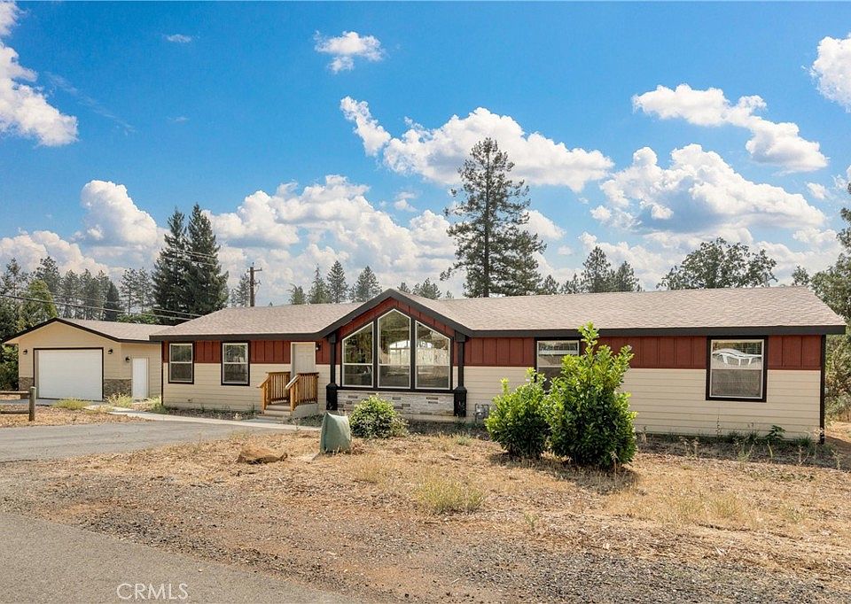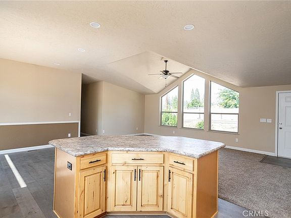 walk-in, wrap around pantries you’ve ever seen. The Primary Suite is spacious with vaulted ceilings and plenty of light and features a well-appointed bathroom with a jetted tub, large walk-in shower with beautiful tile and double sinks on the bathroom vanity. Other appointments of the home are the large indoor laundry area, Two large bedrooms and home office space. Other property features are an area on both sides of the property that allows for full pull around, or RV parking on both sides, large detached 2 car garage, deep lot.