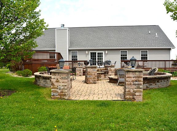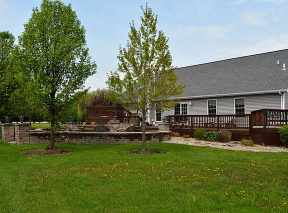 Beautiful tree lined 3-4 bedroom, 2.5 bath home. Over 2 acres of pine trees, stone paved patio that overlooks plenty of wildlife in the back. This home has been professionally landscaped, custom window treatments, hardwood floors, detached garage as well as a two car atached garage. Large all stone fireplace in large great room. Master bedroom has a private bath with separate shower and whirlpool tub.