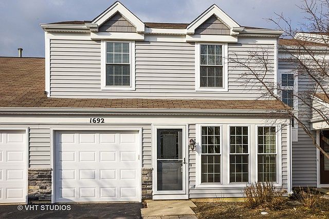 Move-in ready 2 story, 3 bedroom, 2 and 1/2 bath townhouse. This large, bright home features a recently remodeled kitchen with upgraded cabinets and new tile floor. There are newer laminate floors on both levels, new tile in bathrooms, newer furnace and air, newer washer and dryer, ceiling fans in bedrooms and dining room, and recently painted. Look out through new oversized patio doors onto the new deck overlooking a park-like area of Elgin Community College adjacent to a walking path. All windows, siding, doors, and garage door with opener are new. Just move in and wait for SPRING!! SELLER IS A REALTOR.