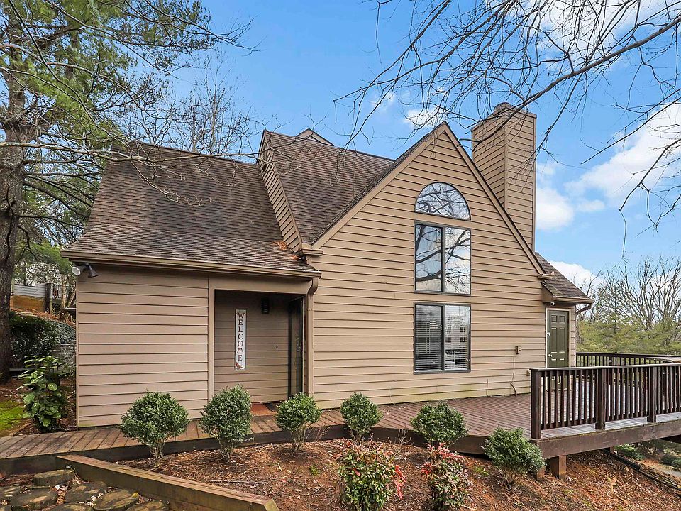 Nestled atop a tranquil hill, this charming home offers a serene retreat with 3 bedrooms and 2 bathrooms. Upon entry, the warmth of wood floors and abundant natural light welcomes you into a space that feels both cozy and inviting. The main level showcases a vaulted cathedral living area, complete with a cozy fireplace, providing the perfect backdrop for relaxation or entertaining guests. Adjacent to the living area, the dining space beckons for intimate gatherings and memorable meals. The primary bedroom, conveniently situated on the main floor, offers comfort and ease of access. Step outside onto the wrap-around deck and immerse yourself in the peaceful surroundings, ideal for enjoying a morning coffee or evening sunset. Upstairs, you will find 2 additional bedrooms, a full bathroom and a conveniently located stacked washer and dryer. Located just minutes away from Wegmans, Downtown Charlottesville, Belmont, UVA, and all the amenities that Charlottesville has to offer, this home strikes the perfect balance between tranquility and accessibility. Experience the convenience and comfort of this delightful abode, offering a lifestyle tailored to modern living.