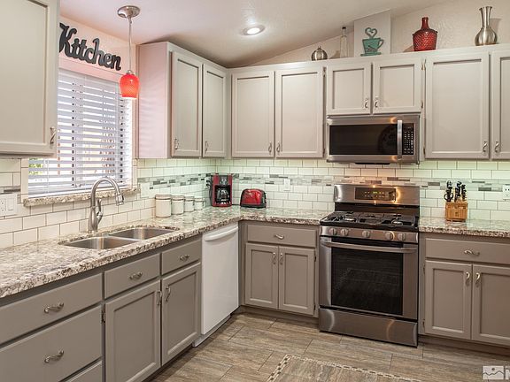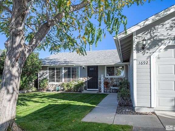 CHARMING SINGLE-STORY GEM - NO HOA! Featuring a fully remodeled kitchen with abundant storage, granite slab counters, undermount sink, stainless appliances, designer backsplash & tile floors. Enjoy a spacious living room with hardwood floors & cozy gas stove. Primary retreat with ample closet space, spa-like bathroom. Your private backyard is a beautifully landscaped oasis with mountain views that provide a breathtaking backdrop. Unwind from the day in the enclosed gazebo that houses a relaxing hot tub., Nestled in a serene and quiet neighborhood with wide streets, this single story 3 bed 2 bath remodeled home with extended driveway provides the epitome of peaceful living. Features like high ceilings, French doors that open to create indoor/outdoor dining, designer flooring and extra tall privacy wall in the backyard offer you a lifestyle that's both comfortable and inviting. Conveniently located close to schools, shopping, excellent dining and entertainment. A short 5 minute drive to the Carson Tahoe Hospital, 40 minutes to the Reno/Tahoe Airport and 30 minutes to gorgeous Lake Tahoe. Carson City is a paradise for outdoor enthusiasts, offering hiking, biking, world class skiing, fishing, horseback riding, and golf. Relax in the natural hot springs or explore the local museums, to immerse yourself in the rich heritage of the state's capital.