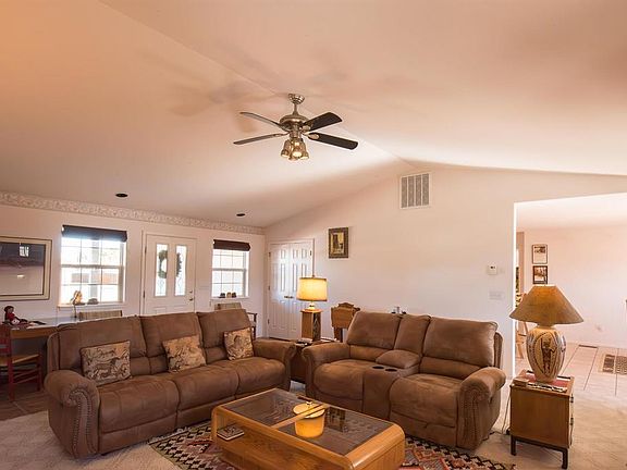Never Before has this home been offered on the market!!!!! Well maintined home, low maintenance. This home has a split floor plan, with master on one side with large walk in closet, tub and separate shower, double sink. The other two bedrooms share a large bath with tub and shower. One of the bedrooms currently being used as an office which works great for either an office or bedroom depending if you need a 3rd one. It also has an exterior access to the backyard. Large Living area with gas firplace. The dining and Kitchen combination also has an exterior access to the back patio to a lovely landscaped yard and also sidewalk out to the 3rd detached garage with extra workshop area. It's a real treat. From the attached two car garage you have a concrete driveway to the detached garage/large workshop which allows for your RV parking and hookup connections, so a lot of parking area Even room for more toys!! The backyard is lovely with all the landscaping blooming in the spring and summer, quiet and very private. The attached garage is large enough for two vehicles, storage and has a handicapped ramp that can be removed if necessary. Entrance from the garage direct into the laundry room with a lot of storage and back into the kitchen with all appliances staying, with a large pantry and breakfast bar. Just under 1700 sq. ft home it has the feel of being most larger. It is in a neighborhood well established and close to all amenities including the Rec Center, grocery stores, banks, restaurants and shopping. Come home to Vista San Juan Neighborhood where there are families or a great retirement area. A bonus is a new roof on both the home and the detached garage/shop. Also a great investor home and the homeowner would love to rent back while her home is being built, so, take a look TODAY!!!