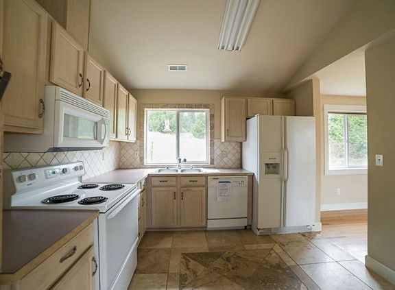 Beautiful Cascade mountain views from this 3 bd/2.25 bth/3 car garage home with room for your RV and Toys! Tiled entry and kitchen. Hardwood floors through living room, dining room and hall. Vaulted ceilings in entry and kitchen. White painted mill work and doors throughout home. Family room off of kitchen has tile surround fireplace with wood mantel and slider out to patio. 3 bedrooms including master with walk-in closet and 3/4 bath.