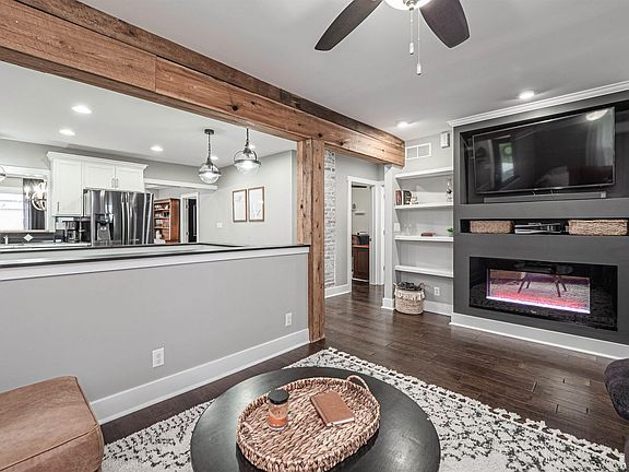 One of a kind find in McCutchanville area sitting on a 1.36 acre lot with a 60'x40' Pole Barn! This home had an extensive full house remodel done and its finished out with impressive finishes! Beautiful interior with open concept! Kitchen features white cabinetry, lots of countertop space, eat-at bar and upgraded appliances. Living room features built-ins and an electric fireplace. The primary suite has tall vaulted ceilings and original wood wall. The main level bathroom features a large walk-in tiled shower with glass door and tiled flooring. The finished basement features a large family room/rec room with full wet bar with included beverage refrigerator & kegerator. There's also an exercise room that could serve as an additional bedroom. Full bathroom with step-in shower is located in basement. Home has a 200 amp electrical system, whole house water filter and water softener system. Outside you'll love the 60'x40' Pole Barn built in 2018. Pole Barn features built-in bar with entertaining area, is fully heated, has a full bathroom and an upstairs storage area. Home has AT&T Fiber Internet Service. Home is on a cistern system for water. Sellers pay Evansville Water Hauling about $180 to fill up the 4,400 gallon tank 8-10 times per year. Home is on septic system with septic lid by the back deck.