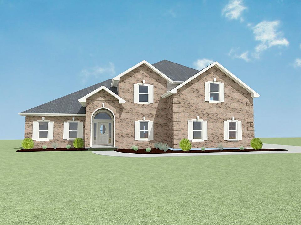 The Greendale Plan D is a two story home with 3 car side entry garage and is backed by a 2-10 home warranty.. Home has 4 bedrooms (Master bedroom plus one are downstairs), 3 baths and an upstairs bonus room which could be a 5th bedroom. Great Room features 12' ceiling, extensive trim, gas-log fireplace with raised stone hearth, wood plus flooring and recessed lights and ceiling fan. Dining room has 9' coffered ceiling, wood plus flooring, extensive trim including shadow box under chair rail. Kitchen includes 9' ceiling, custom cabinetry and granite counter tops, large island with raised bar seating, stainless appliances including gas cooktop, wall oven, wall microwave and dishwasher, tile backsplash, tile flooring, recessed lighting, and huge walk-in pantry. Breakfast has 9' ceiling, tile flooring and extensive trim. Laundry has custom cabinet, tile flooring. Isolated Master bedroom has 9' ceilings plus a double tray, recessed lighting, extensive trim and ceiling fan. Master bath has 11' ceilings, glamour tub with tile surround, large corner tile shower with tile bottom and rimless shower door, separate toilet area, double vanity with granite counter tops and huge walk-in closet. Second bedroom and bath down have wider doors to accommodate wheelchairs. The home has hardwood stairs leading to the second story. The additional bedrooms and bonus room have ceiling fans and crown molding. Home has a large covered rear porch perfect for entertaining. Home includes fully sodded yard