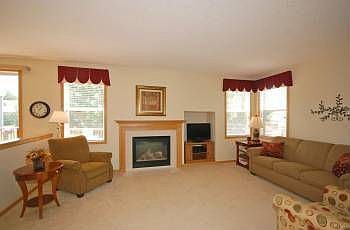 Spacious open design!Dramatic 2story foyer,dining&living room!Kitchen w/newer Cabria counters&tile backsplash.Gleaming solid hardwd flrs!Updated lighting,window treatments&paint.Lower lvl boast floor-to-ceiling stone fireplace,bar&built-ins.Move-in ready!