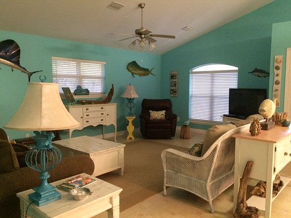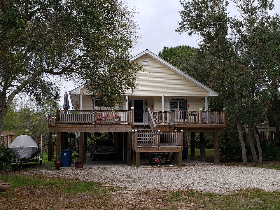 Exceptionally cute home across from the Lagoon move-in or rent ready. This 3 bed 2 bath raised beach home is immaculate throughout. Open floor plan with Kitchen/Dining/Living and a deck off the front to enjoy the view and morning coffee. Nice size master and bath. Storage room and parking underneath for cars and boats. Quiet neighborhood but close to great amenities. Boat launch 5 mins away, walk to the Lagoon, 10 minutes to the Gulf beaches & great restaurants. This is a must see home!