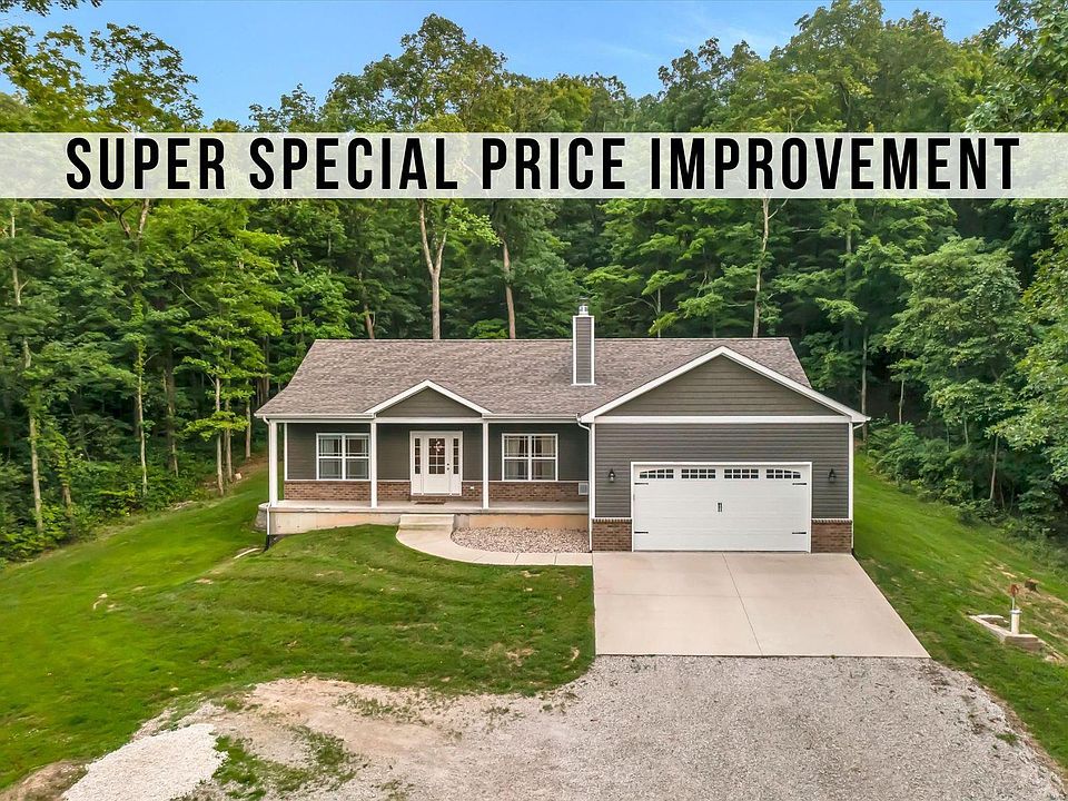THE TIME IS NOW! ANOTHER SUPER PRICE IMPROVEMENT ON THIS BEAUTIFUL HOME & PROPERTY! A gorgeous 4 yr NEW HOME nestled in 3+ Acres for outdoorsy & entertaining types alike. A slice of luxury living w/ a secluded feel. Nature/Wildlife lovers will be right at home w/ regular visits from deer/turkey, etc. Special Features Include: Divided Bed Floorplan w/ huge primary suite(ceiling vault, jacuzzi tub/full tile shower), LL nicely finished w/ 4th bed, walkout, wet bar rough-in, secret safe room, whole house humidifier & water softener, 2-50 gal water heaters & ample storage, Floor to Ceiling Stone FP(Wood Burning) in Great Rm, 8' Island w/ Breakfast Bar, Spectacular granite tops, customized white cabinets(soft-close) w/ crown molding & black stainless appliances, & pantry round out the kitchen, main floor laundry w/ built in cabinets, extra large covered front porch w/ great views & a private covered back patio w/ hot & cold faucets(also in lg 2 car garage) & more. READY TO VIEW-CALL TODAY!