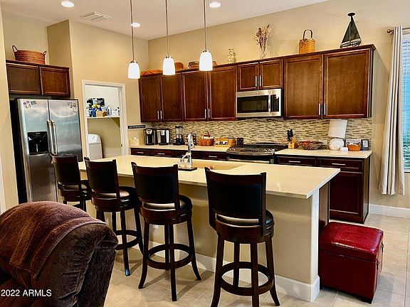 This Beautifully upgraded 2 bedroom 2 bath Villa is conveniently located near the Oasis Pool complex! The split bedroom floor plan allows privacy for you and your guests. Kitchen features Quartz countertops, Gas Range, Stainless Steel appliances, large island and extra-large pantry. Huge laundry room by kitchen for added storage potential. Bathrooms with tile surrounds and Quartz. Master Bedroom includes walk-in closet and bath with Curbless Tiled Shower and Dual Sinks. All appliances and Simplisafe security system included. Nice private patio area backs to open space with desert landscape maintained by the HOA. Front yard also maintained by the HOA. Owner has added wood blinds and pull shades on Master Bedroom and sliding door. A great lock and leave property!