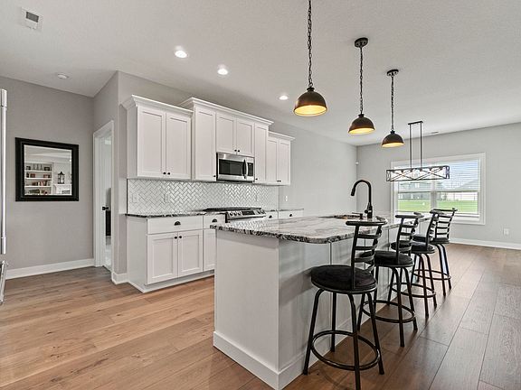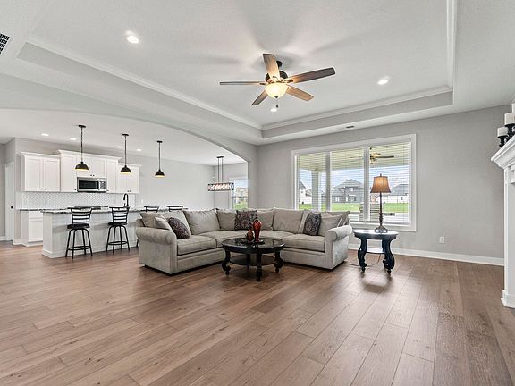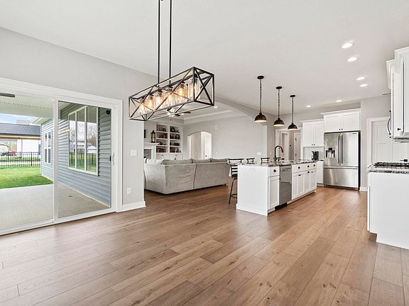 Gorgeous ranch home with over 2100 SF, 3 bedrooms, 2.5 bathrooms, larger 3 car garage on a beautiful pond lot in Rolling Oaks. You will be drawn in by the gracious curb appeal and sodded front and back yards. The custom kitchen is sure to please with granite countertops, stainless steel appliances, soft close doors and drawers, and a 9x5 walk in pantry. The Living Room has a step up ceiling to 10', and new bookcases, which flank the gas log fireplace. The split bedroom floorplan offers a spectacular 17x15 primary bedroom and full bathroom with a tile shower, dual vanities, and natural light. The 3 car garage has custom built-in cabinetry providing storage, along with floored space in the attic. Wide doorways will provide ample space for those in need of mobility assistance devices. Blinds are in place on the necessary windows. The 17x14 patio will allow you to enjoy peaceful evenings outside, protected from the sun, and has footers should the buyer desire a sunroom or enclosed porch. Why build when you can have the best of today's features, the yard is in, and the 'extras' are in place?