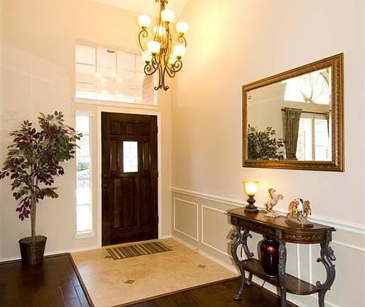 Wonderful landscaped home sits just outside the cul-de-sac. Many upgrades!! Scraped Wood floors, Travertine & Frieze carpet. Updated fixtures & decorator colors. Kitchen has custom color cabinetry, w/granite counters, stainless appliances & gas cooking. Master has a en-suite bath, new fixtures & decorator touches, w/garden tub. The guest rooms are upstairs, very spacious & walk-in closets. Upstairs media room w/fireplace. The 2 car garage is accessed through the gated drive & back yard.
