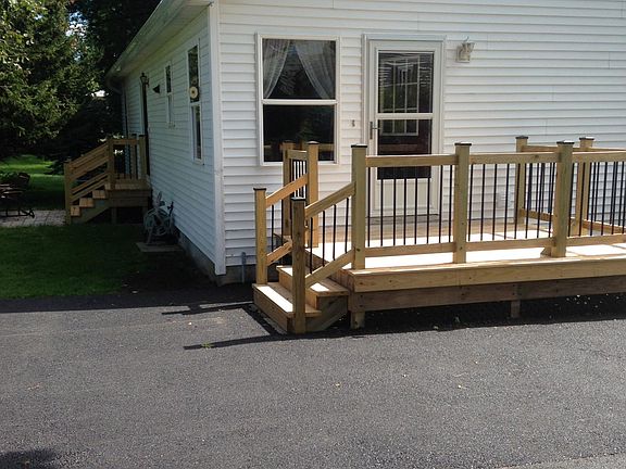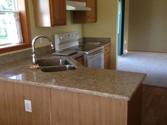 New flooring, carpets and curtains. Vaulted ceilings, central air, Two decks with patio space. New kitchen appliances and laundry room with new appliances. Garage included. Landlord will do lawn care and snow removal.