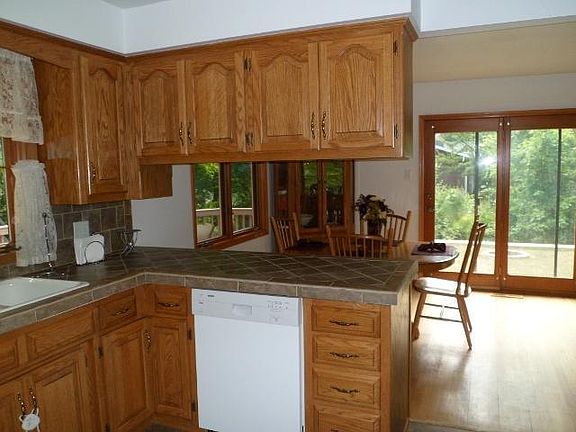 Beautifully located, comfy raised ranch home in the country located on 1.65 wooded acres that also includes 400 ft of river frontage property across the street. Almost the entire interior has been updated in the last few years. Enjoy the warmth of a wood burning fireplace in the great room. Kitchen and main bath have tiled floors and countertops. Hardwood floors in the great room and dining room. Enjoy the ease of central vac. Lower level has family room or office along with laundry room with tons of storage space. New retaining wall outside with fairly new roof, siding, and windows.
