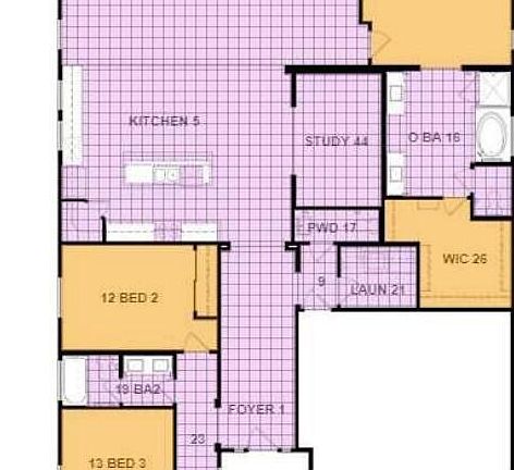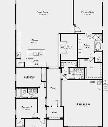 MLS# 6850063 New Construction - August Completion! The 45-RM3 is a thoughtfully designed one-story layout offering 2,587 sq. ft. with 4 bedrooms, 2.5 bathrooms, a study, and a 2-car garage. Just off the foyer, you'll find the secondary bedrooms and laundry room tucked away for privacy. The heart of the home features a spacious open-concept kitchen, casual dining area, and great room—perfect for gatherings. The study, located near the kitchen, can be upgraded with double doors for added privacy and charm. In the primary suite, enjoy a large walk-in closet, dual vanities, and a separate soaking tub and shower for a relaxing retreat.