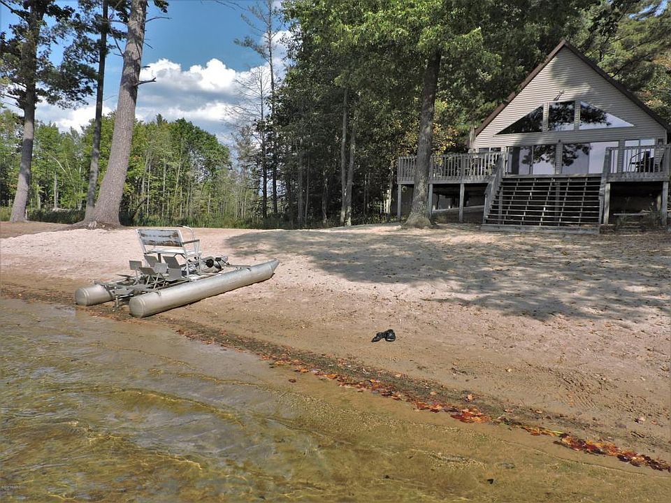 Gorgeous waterfront on all sports Youngs Lake. This property has a HUGE sandy beach with great swimming. The wall of western facing windows gives you a spectacular view of the lake and gorgeous sunsets in the evening. Just a short drive to Big Rapids but a private setting close to 100's of acres of state land. This 3+ bedroom, 3 bath chalet is updated with great colors, new flooring and a great open concept layout.