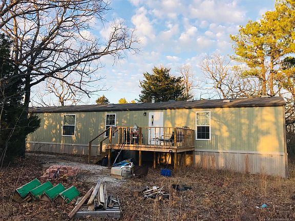 2010 Manufactured Home on approx 2.5acres m/l. Permanently affixed to foundation. Open floor plan, with split bedrooms. 2 full bathrooms. Dining room builts ins. Propane kitchen stove and furnace. Separate utility room. Lovely views of wooded land. Fenced yard, wheelchair access ramp on front of home, large deck on back. Detached, 3 sided carport. Adjacent 23.33 acres (m/l) vacant land available, MLS #1936929.