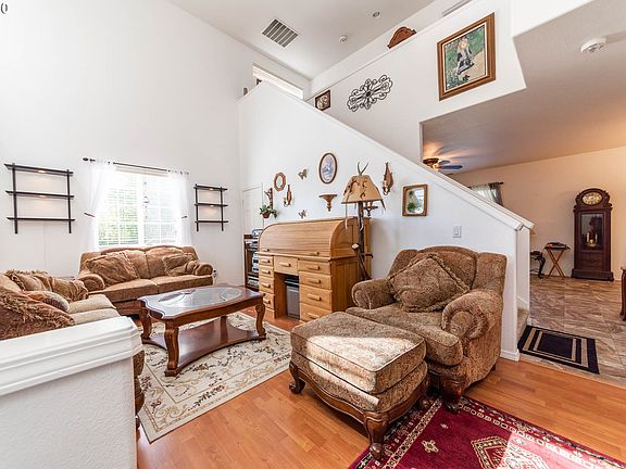 Home features wonderful a separation of space. Living room has a gas fireplace and family room has vaulted ceilings. The spacious Primary suite features a bathroom with a double sink. Open concept kitchen has all stainless steel appliances, Granite countertops, And newer tile floors. Indoor laundry room off of kitchen. This nicely landscaped backyard features new fencing, A new awning, Two newer Tuff sheds, And raised garden beds. RV parking includes 30 amp hookup and sewage dump. A must see!