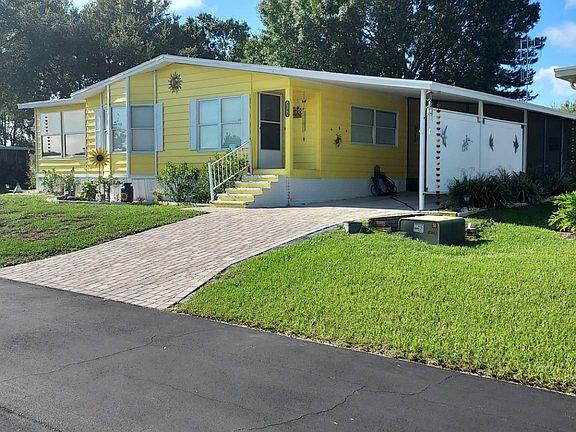 PICTURES SAY IT ALL - Move in Ready - New roof 2021! Located on a corner lot in the very desirable 55+ Foxwood Village, Community internet and cable plan with 250+ Channels and 4mbps high speed internet. This 2/2 home has plenty of living space, French doors lead to very large climate-controlled Florida Room! The master and guest bedroom are very spacious each with its own bath! No Carpet, tile floors throughout. You will love the walk-in closet space in the bedrooms and indoor laundry, additional storage in the covered/attached shed, plus a detached shed. Foxwood Village is an active 55 community that is pet friendly and offers great amenities like: Clubhouse with too many activities to mention, Dog Park, Exercise Room, Pickle Ball Court, Corn Hole, Putting Green, Firepit, Heated Pool, Tiki Huts, Rec Room, Hot Tub, Showers, Security Cameras, Social Clubs! Conveniently located near shopping, restaurants, medical facilities and just a short drive to popular Florida attractions! Home sold 'As Is' without warranties or guarantees by seller and/or sellers representative. All listing information is deemed reliable but not guaranteed and should be independently verified through personal inspection and/or by appropriate professionals. The buyer assumes full responsibility for obtaining all current rates of lot rent, fees, or pass-on costs associated with the community, park, or home from the community.