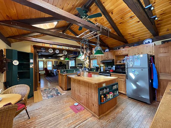 Experience the beauty of Vermont with this 1848 pre-Civil War farmhouse that exudes charm, character, and rich history. Step inside and be greeted by the warmth of hand-hued beams, wide plank floors, and an open-concept living space that is unlike most traditional farmhouses. High ceilings and abundant natural light create an inviting and spacious atmosphere. The generous kitchen has wood vaulted ceilings, exposed beams, large center island, a gas stove, new dishwasher, and a breakfast nook overlooking the garden. Cozy up to the wood-burning stove, admire the custom built-ins, or get work done in your private office. Two bedrooms and a half-bath upstairs, along with a main-floor bathroom and bedroom with a private half-bath, make this home perfect for gatherings of any size. The home also features a whole-house generator to ensure peace of mind. Off the large mudroom entry is an attached 60x26 two-bay garage with a workshop, poured concrete floors, and caretaker's quarters. An additional 26x24 two-story barn makes this property ideal for a home business. Step outside your 3 season porch and take in the beauty of the property from a screened in gazebo overlooking your private pond. Steps off the back deck are walking trails that meander through the gardens and serene country setting. Access to snowmobile and ATV trails with ample storage for outdoor toys. Come see this unique and stunning property for yourself and fall in love with Vermont living.