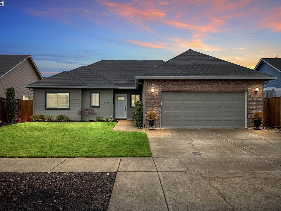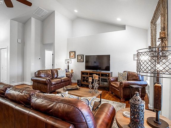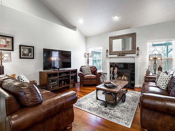 Beautifully remodeled single level home in desirable Harvest Ridge neighborhood. Open floor plan has immaculate kitchen that includes gorgeous white cabinets w/soft close, granite counters, huge island, double oven, gas cooktop, complimented with vaulted ceilings expanding into the large family room w/ gas fireplace, & gorgeous hardwood floors. Enjoy the privacy in the nicely landscaped yard; relax or entertain under the covered patio. Tool shed has power. Excellent location near school/parks.