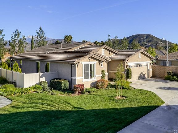 AMAZING LAUREL 3 HOME ON LARGE LOT THAT AFFORDS PRIVACY! This one of a kind beauty won't last, beautiful drop dead gorgeous home on a 12,196 SF lot with long 90 foot driveway. Beautiful 20X20 tile floors with decorative inlay throughout. High ceilings with ceiling fans & upgraded lighting in every room. Open floor plan to beautifully landscaped backyard complete with drip system, fountains, storage shed with doggy door & gated dog run. Stamped concrete patio and alumawood cover. Office has beautiful dark wood floors and comes complete with matching office furniture. Master bedroom has walk in his/her closets and a small fireplace for those cool nights to keep you warm and cozy. Master bath has decorative tiled shower and bath with jetted tub, separate double sink areas and a sit down vanity. Attic storage with built in ladder. Home comes partially furnished with high end furniture and decor. Inventory list to be provided with acceptance of offer and loan approval.