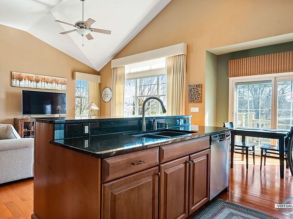 Prime Location and a very special home! One of only a few pond-view homes in the amenity filled Stonegate West (SGW) community. Emphasis on the word "Community"! This single-family home has a beautiful open floor plan that is designed for SINGLE LEVEL LIVING while still incorporating 3 bedrooms and 2700 square feet of finished living overall. The Master Bedroom, second bedroom or office, 2nd full bath, laundry and spacious open living areas with vaulted ceilings are all on the first floor! No steps to climb! But the showstopping feature is the pond/fountain view from each of its sun filled rooms. The kitchen was remodeled about 6 years ago, and this homeowner is meticulous, so you can move-in right away! You'll enjoy entertaining with this combined Dining room, family room and cook's kitchen with sliding door access to the raised deck. But that's not it... The finished lower level invites you with beautiful views from full-sized windows overlooking the pond as well! There you will find a second family room, office area and a guest bedroom along with a full bathroom, workout room and large storage areas. No worries about the mechanicals because you have a newer Furnace and A/C and water heater as well as a full ION monitored dual sump pump system with battery monitoring! Stonegate West (SGW) is a fantastic subdivision targeting 55+ adults although many younger families live here too. SGW consists of single family and attached homes, with a lovely clubhouse, outdoor pool, exercise room, walking trails, and most importantly many activities and opportunities (if you so choose) to meet and socialize with neighbors. The association is well managed and fiscally strong with a low monthly assessment. Snow removal and Yard maintenance and other services such as mulching, driveway sealing, etc) are included for all residents. Make sure to see the Virtual tour and walk out onto the deck!