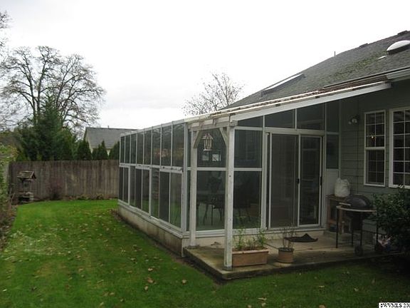 Well built home in semi secluded location. Includes beautiful 12x20 all glass enclosed heated patio with tile floor, great for winter time entertaining. Great room floor plan with vaulted ceilings. Master with walk-in closet and spacious shower, gas range wired for electric, garden shed with power and vinyl windows. Freshly painted inside and carpets professionally cleaned.