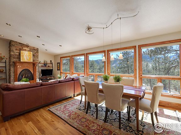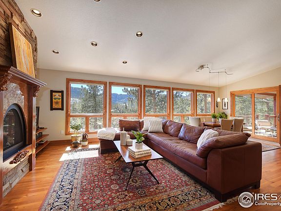 Serenity. That is what this rare property offers its new owners. This elegant and close-in mountain home sits quietly on over 2 acres of mostly level, useable land comprised of two adjacent parcels. Main floor living with an attached two car garage makes this a great option for anyone wanting fewer steps. The interior finishes offer truly timeless elegance - cherry hardwood floors, stainless appliances, alder 2-panel doors and cabinetry, granite counters, built-in movie and surround system and a fully finished south-facing walkout basement with another family/rec room and two additional bedrooms. Luxurious primary bedroom with a 5-piece bath including steam shower and jetted tub. The outdoor spaces are heavenly. A covered deck sits off the main level for morning coffee. The backyard has extensive concrete patio surrounded by grass, stone outcropping and evergreens. It's the ideal place to host summer sunset dinner parties. The neighborhood is surrounded by Roosevelt National Park offering miles of hiking, wildlife viewing and other recreational opportunities. Ideally located 10 min from downtown Lyons - 20 min from Estes Park. 30 min to Boulder/Longmont. This property will be available for showings after March 8th.