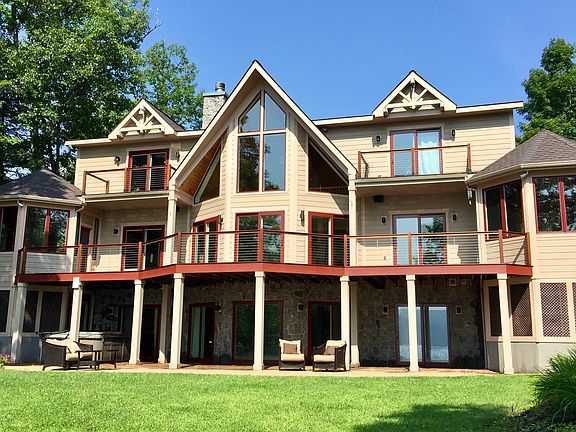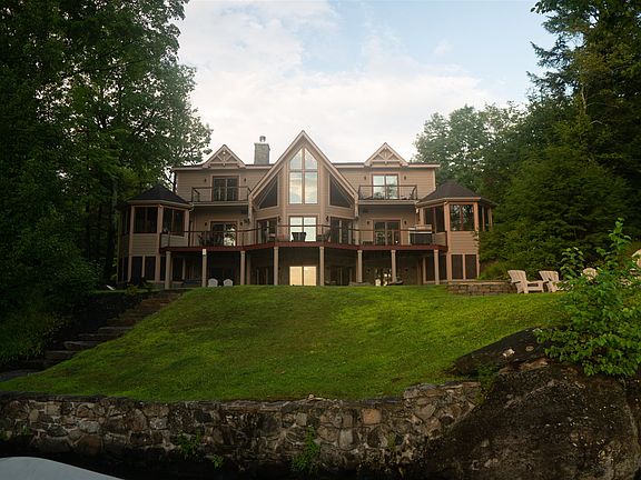 Pristine 5 bed/7 bath directly on The Queen of Lakes! "Smart home" on Lake George features 3 dock slips w/ roof & 10k lb lift, sandy swimming area, control Elec/Lights/HVAC/Music via phone, surround sound, auto generator, instant hot water, 3 story elevator, bonus room for add'l hangout/sleeping, finished walkout basement w/ "movie theater", & add'l kitchen, hot-tub, fire pit at water's edge, & most importantly the most gorgeous year round lake/mtn view & sunsets. Kitchen boasts craftsman ceiling height cabinetry, oversized Sub-Zero fridge, Wolf range, granite, wine cooler. Tile/hardwood floors & vaulted ceilings throughout. Master suite w/ fireplace & sauna shower. Every bed has a full bath, either a balcony or patio, & LAKE VIEW! Walk to Buck Mtn. and other hiking trails.