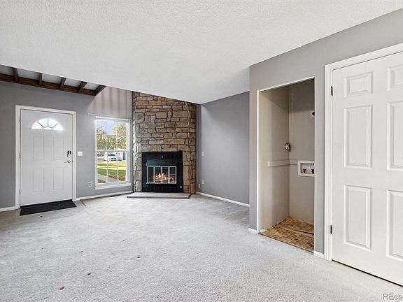 Welcome to this cute, one-bed, one-bath townhome just north of Heather Gardens in Aurora. The ground level greets you with a cozy living area and wood-burning fireplace ready to be lit for those cold, winter months. Before entering the kitchen, there's the perfect spot to place a table and chairs to enjoy your breakfast and morning cup of coffee. The small but accessible kitchen includes a Kenmore refrigerator, Insignia microwave, Whirlpool oven and range, and Whirlpool dishwasher. Easy access to the backyard is located adjacent to the kitchen. The back patio invites you to a shared, green backyard perfect for your furry friends. Don't forget the outdoor storage closet for your bikes, skis, etc. As you go back inside and upstairs, the one-bedroom loft gives you a birds-eye view of the main floor, overlooking the fireplace. Closest to the banister is a wonderful location for a desk or bookshelf. The bathroom and vanity are conveniently blended into the upstairs bedroom loft. You'll find closet space directly across from the vanity and next to the closed-off shower and toilet. This townhome is move-in ready and perfect for updates along the way! Nearby points of interest include the Medical Center of Aurora, Gateway High School, Tierra Park, Rosie's Diner and Jewell Wetlands Park.
