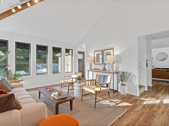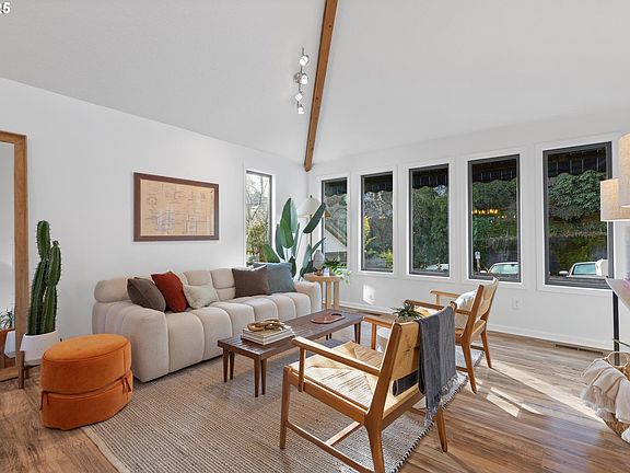 Perched high above Portland's sought-after Goose Hollow neighborhood, this ultra-cool 3-bedroom, 3-bathroom home is a perfect blend of comfort, convenience, and 70's vibes. With its distinctive 1970s treehouse architecture, the home is surrounded by towering trees, peekaboo views of the city and lush greenery from every angle. Inside, you'll find a bright, open floor plan with spacious living areas, exposed beams, and vaulted ceilings. Large double-paned black fiberglass windows flood the home with natural light and offer stunning views from every room. The updated kitchen and dining spaces flow seamlessly into the living room and family room. This floor plan is to-die-for.Each of the three bedrooms (all on the same level!) is a private sanctuary, including a primary suite with its own en-suite bath. With three full bathrooms, there’s ample space for everyone to enjoy their own retreat. Plus, you'll love the bonus office/play space on its own level that is truly drool-worthy. A wall of windows drench the space in natural light. Are you an artist? Do you work from home? Do you love storm watching? This is the room for you! Enjoy a newer Trex deck that overlooks the city. Loving owner updates include: a newer roof, newer exterior stairs and entryway, newer fiberglass windows, newer 96% efficiency furnace, and a newer water heater adding peace of mind for years to come. Need parking? No problem! There’s room for two cars inside and outside the garage.Located just minutes from downtown, this one-of-a-kind home offers the best of both worlds: a secluded, tree-filled retreat with easy access to downtown and local favorites like the Goose Hollow Inn, The Leaky Roof Pub and Blue Star Donuts. Looking for an ultra stylish home with treetop views within a stones throw of downtown? Don’t sleep on this one! [Home Energy Score = 1. HES Report at https://rpt.greenbuildingregistry.com/hes/OR10010105]