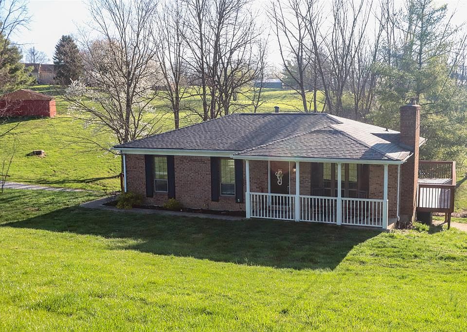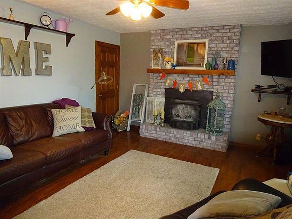 Excellent opportunity to own this well loved, full brick ranch on over 2 acres. Beautiful hardwoods & wood burning stove accent the great room. Fully equipped eat in kitchen features walkout, island, & granite counters. Lower level boasts walk out, wet bar, & newer laminate flooring. Gorgeous bedroom suite LL offers custom closet system, crown molding, tongue & groove ceiling, & modern full bath with laundry room. Updates include; 1 year new roof, 2 year AC & HWH, 3 year furnace, & vinyl replacement windows. Enjoy the covered front porch & freshly stained deck overlooking woods. USDA eligible