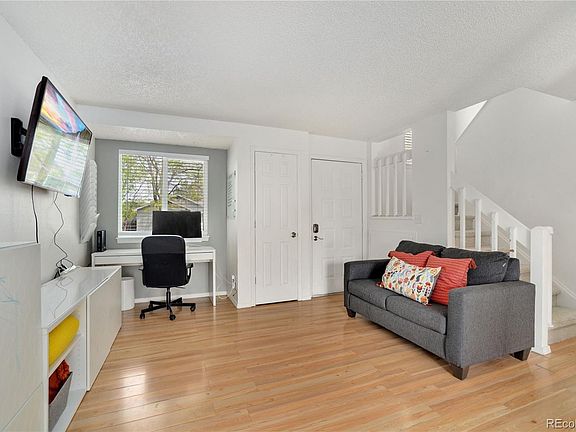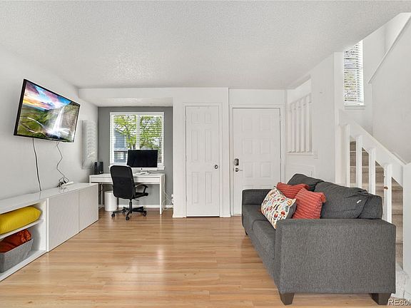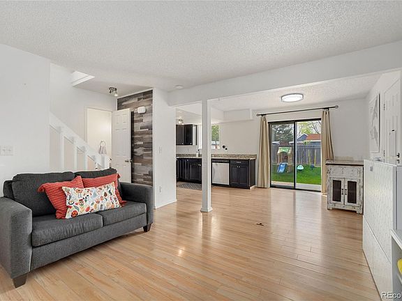 Move right in to this thoughtfully updated and lovingly maintained Summer Valley two-story home! The welcoming interior features fresh paint, updated flooring, abundant natural light, updated blinds, and refreshed bathrooms. Easily entertain family and friends from the spacious open concept main floor. The modernized kitchen delights with beautiful granite countertops, a pantry, and updated stainless steel appliances. A sliding glass door off the dining room opens out to the sprawling patio and the sizable newly fenced backyard that features a lush lawn. Two bedrooms, a lovely updated full bathroom, and the laundry closet (complete with an updated washer and dryer) are conveniently found on the second floor. Both bedrooms include built-in closet systems for ease in organization and the primary bedroom has a sleek new ceiling fan. Additional updates include the exterior paint and the evaporative cooler. Excellent location within the award-winning Cherry Creek School District in a quiet and friendly neighborhood with no HOA. Relish quick access to Quincey Reservoir, miles of trails, Grandview Dog Park, shopping, dining, and Southlands.
