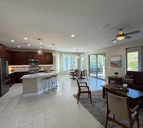 Professional pictures coming soon. This impeccably maintained home in the prestigious PebbleCreek community offers a carefree, luxurious lifestyle. Featuring 2 bedrooms, 2 bathrooms, and a private den, the home sits on a light and bright 6,602 sq ft lot with scenic views of a beautifully landscaped common area.