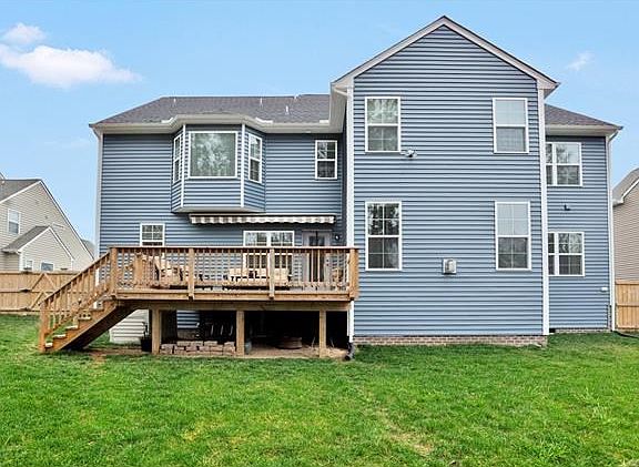 This beautiful home is loaded with upgrades. Popular Lancaster (Main Street) model is open and spacious! Large foyer with formal living room on the left and dining room on right that leads through the butlers pantry on the way to the stunning kitchen! Tons of cabinets, gas cooking, wall oven, oversized island, granite counter tops, backsplash, walk in pantry, eat-in area leading to the family room with gas fireplace! Hardwood floors on majority of first level and stairs! 1st floor bedroom (or office) and full bath! Upstairs is an oversized master suite with a beautiful spa bath and huge walk in closet! Bedroom with private bath. Two other bedrooms, bathroom, and popular large second floor rec room!! The third level is finishable with a rough in full bath. Large deck with retractable awning overlooking the fenced rear yard.