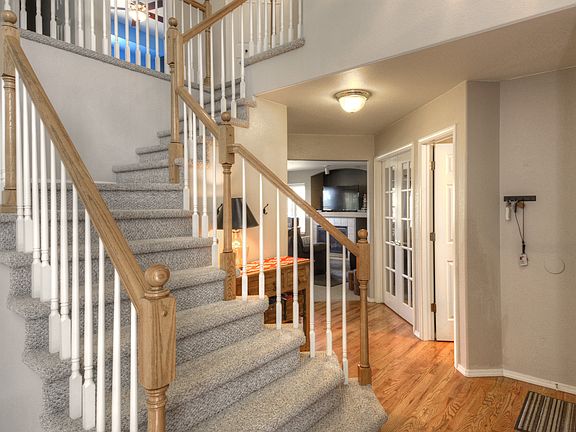 Enter the gorgeous vaulted foyer of this wonderful home and admire the impressive high ceilings in the formal living room. The kitchen has granite counters on the island as well as the breakfast bar. The large family room offers built ins, prewire for surround sound, and a cozy fireplace. Rare find in 6 good sized bedrooms! The basement family room has gorgeous built-ins too! There is a rough-in for your future wet bar as well as prewire for surround sound. The sizable backyard backs to open space, so no neighbors behind you. The oversized covered patio makes a great place to entertain or relax while you watch the sun set over the mountains. It's pre-wired for your future hot-tub too. A garden box is ready for you summer veggies! Don't miss the dog run on the side of the house. On warm summer nights you can turn on the whole-house attic fan to cool down quickly. Access to the Santa Fe Trail is only 1/3 mile down the street and Pike National Forest and Monument Fire Center are less than 2 miles. Don't miss this great house in a friendly neighborhood in D38!