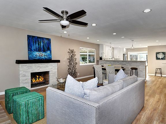 Live the beach life in beautiful Huntington Beach! This completely remodeled and updated home offers the California lifestyle that we are famous for and is two miles to the beach and Huntington Harbor. Imagine spending time on the beach every day! This home has an open floor plan perfect for entertaining. Large updated kitchen with ample granite counter tops and stainless steel appliances. The living room offers a warm and inviting stacked stone fireplace perfect for chilly winter evenings. This desirable one-story floor plan includes 2 bedrooms, 2 full bathrooms with double sink vanities. The master bedroom is spacious with two closets and a beautiful spa like ensuite with large open shower. Enjoy your own tranquil patio off the master bedroom, great for morning coffee and meditation. The second bedroom is private and convenient to another large spa like bathroom. Newer windows and doors, recessed lighting and a soft paint pallet throughout. Great attached garage with direct access and this home has only one common wall in garage. This location offers views of the open grassy lawn, mature trees and privacy. Enjoy the community pool, tennis court and recently remodeled clubhouse. Conveniently located next to Meadowlark Golf Course, shopping and restaurants. This is a one of a kind home in the Fernhill Community and is not to be missed!