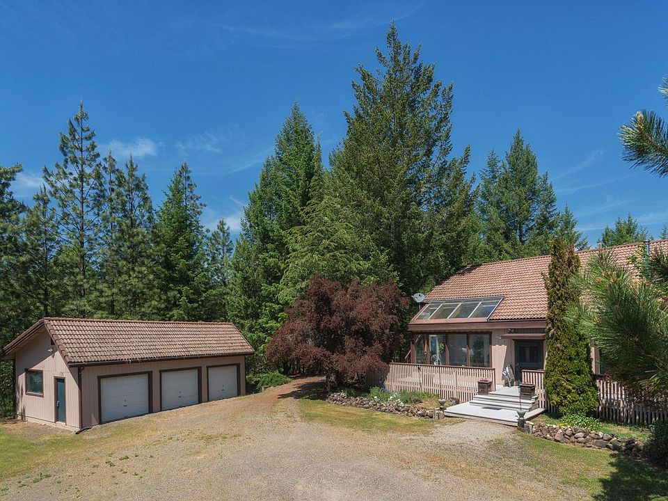 This very private 24+ acre retreat incl. several structures & could accommodate a multi-family compound, horses, and even generate rental income. Main home has 3bdrms/2 baths w/a light, bright feel throughout. In the living room, a wall of windows stretch all the way up to the knotty pine ceilings, allowing you to enjoy your natural surroundings. Across from living room is an inviting, step-down solarium perfect for relaxing or entertaining. Adjacent to the solarium is an in ground hot hub. The master bdrm has direct bathroom access and a private deck. The grounds around the home are very welcoming w/plenty of manicured area for kids, pets, toys or whatever you wish. Apart from the main home is a cabin w/lots of storage on the main level. It has a living space complete w/bath, kitchen, living area & sleeping area. Further down the drive is a two-level 36x 22 shop & a fenced area perfect for horses. Call for a private showing today.