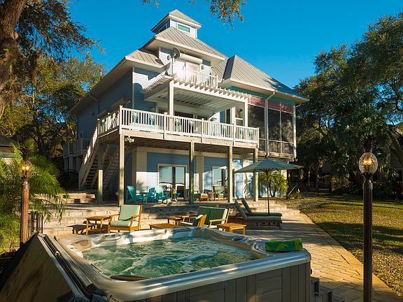 Come live the laid back, Cedar Key lifestyle in one of the best waterfront homes on the island. Relish the breathtaking sunsets from a variety of beautiful outdoor living spaces. Sit by the outside fireplace or relax in the hot tub on the custom paver patio. Enjoy all the water-sports the gulf has to offer right in your backyard; 260 foot lighted dock to the covered boat and jet-ski lift. Kayak and paddle-board launch/ storage right from the dock. Decorative metal fencing encompasses the entire backyard. The house has an open floor plan with soaring 22 foot tongue and groove cathedral ceilings in the living area. Brand new hurricane rated triple sliding glass door off the living room and double slider off the dining area open on to the screened in and covered porches. Prepare your catch of the day while you watch the sunset in the light-filled open kitchen. The upstairs is devoted entirely to the master bedroom, giant ensuite bath, walk-in closet and laundry/utility room. MUCH MORE!