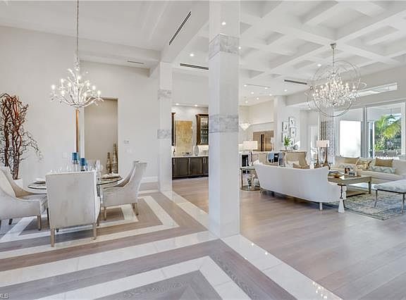 Iron Star Luxury Homes' 5,810-square-foot Villa Lago residence is priced at $3.29 million includes a fully-furnished designer package of custom window treatments, bedding and designer accessories valued at over 350K. The Villa Lago has beautiful views of Talis Park's Greg Norman Pete Dye 18 hole private golf course. This beautiful estate homes great room plan also has a double-island kitchen, formal dining room, dry bar, study, four bedrooms, four and two half baths, an outdoor covered veranda with outdoor summer kitchen dining and sitting areas adjacent to a custom heated pool and spa with fire feature and glass mosaic tile.