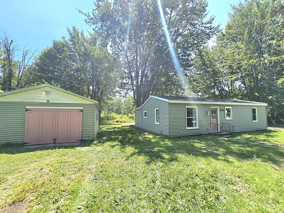 Charming Country Ranch - Fully Remodeled inside and out. The home has a brand new septic, a brand new well, new siding, a brand new double trench drain system installed in the front yard as well as complete exterior grading of the yard. The interior has been beautifully updated with 3-bedroom, that combine modern comfort with peaceful country living. Step inside to discover brand-new LVP flooring, fresh paint throughout, and a stunning kitchen featuring all new appliances—perfect for home-cooked meals and entertaining guests. You'll love the small-town feel and privacy this property offers. The 1-stall detached garage features an ideal hangout space behind it—perfect for bonfires, barbecues, or simply relaxing and enjoying the quiet of the countryside.
