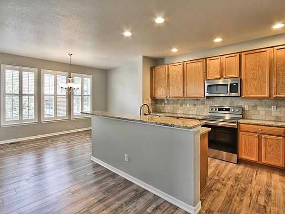 - Eating Space / Kitchen, Open Floor Plan, Five Piece Bath, Kitchen Island, Master Bath, Master Suite, Updated, Window Coverings, Remodeled, Pantry