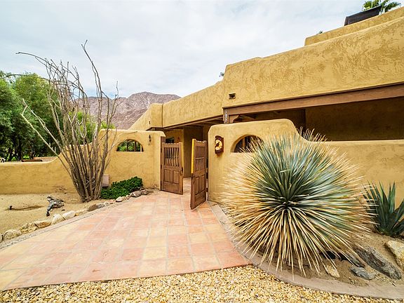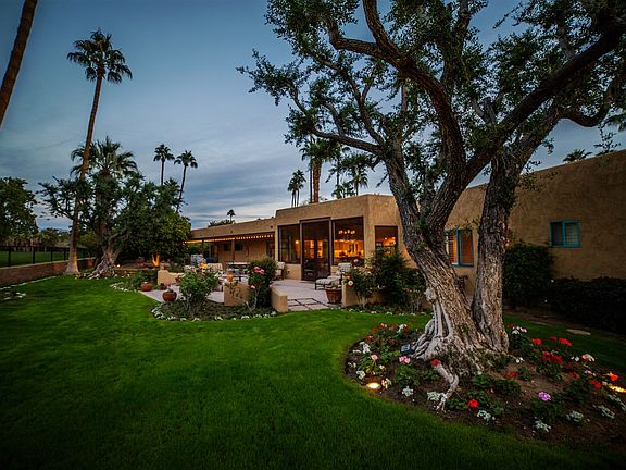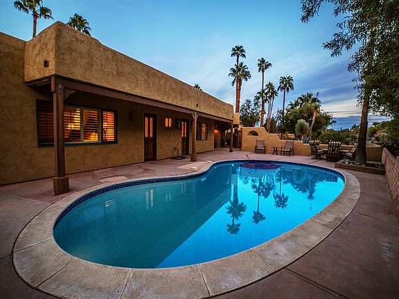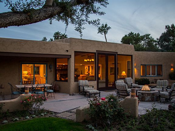 Mountain and golf course views from this pristine single level home located on the 15th green of De Anza Golf Course. Property was extensively remodeled in 2012. Full kitchen remodel, gas cooktop, 9' doors in entertainment room, custom cabinetry, murphy bed in TV room to allow for a 4th bedroom, wood shutters, carpet, fire pit, exterior landscape lighting, exterior paint, tankless water heaters, exterior wall and fenced backyard. Private courtyard with pool and enclosed dog area.